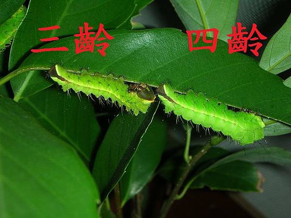 | 四齡幼蟲:體色和三齡幼蟲大致相似,體型大很多。 |