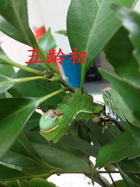 大透目天蠶蛾 剛脫皮尚未進食 五齡幼蟲.